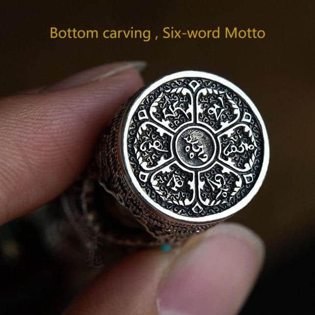 • Rotatable mantra wheel – smooth spin with sacred intent