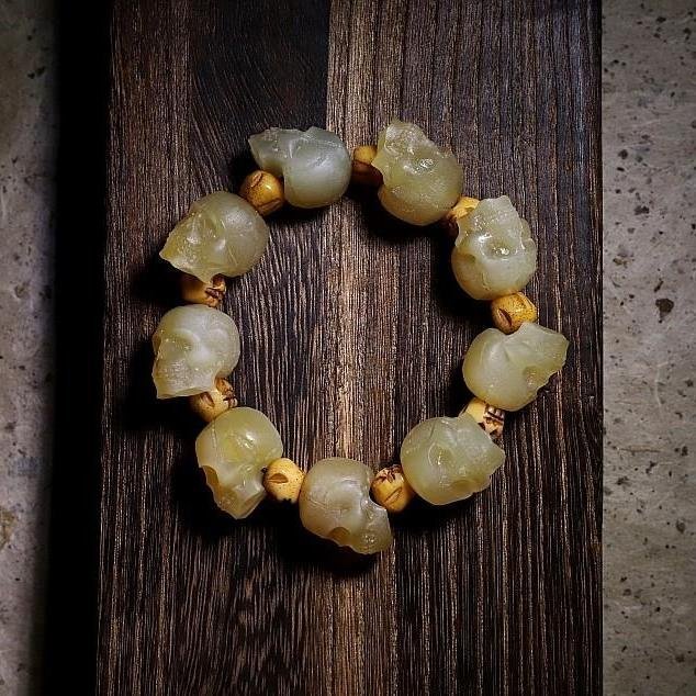 Each bead is meticulously carved from natural goat horn, a material valued in traditional cultures for its durability and connection to the natural world. The horn’s warm, variegated tones—ranging from creamy whites to deep browns—display organic patterns that highlight its raw, authentic charm. Goat horn is believed to carry grounding energy, symbolizing strength and resilience, making these beads a tactile reminder of nature’s enduring spirit.