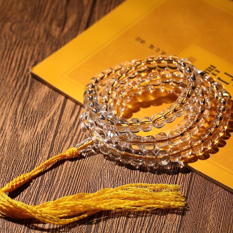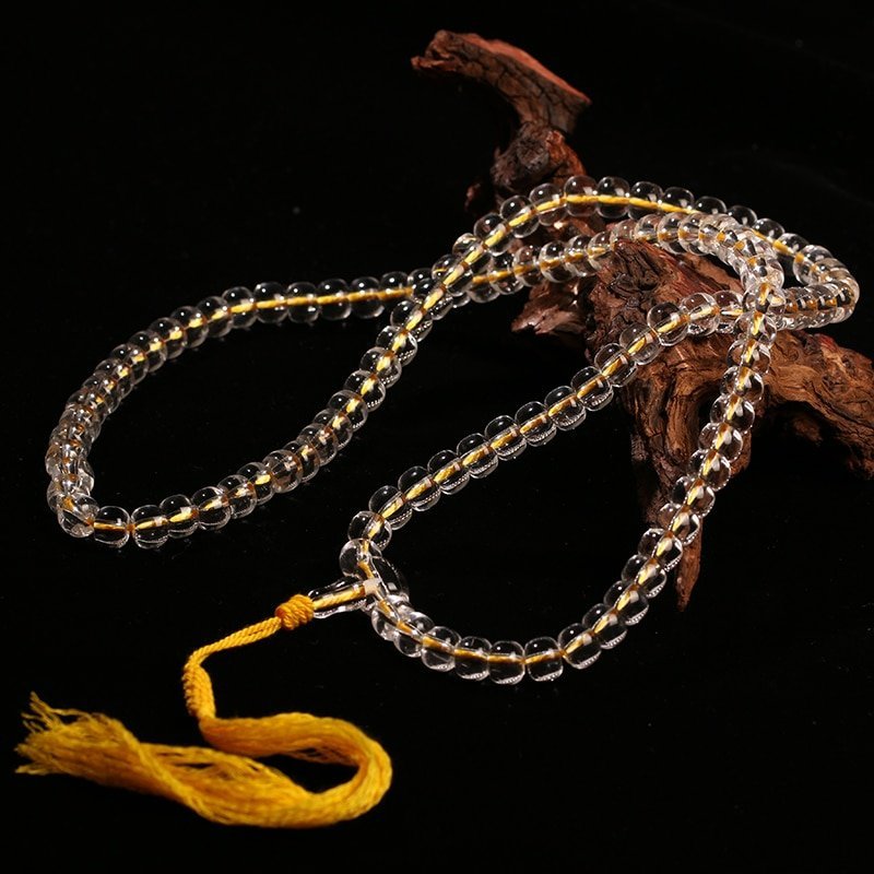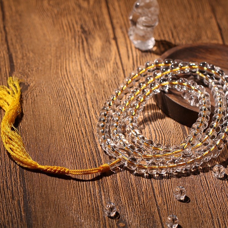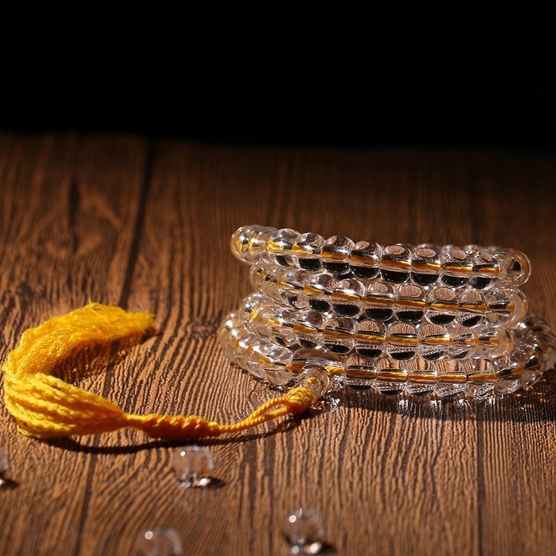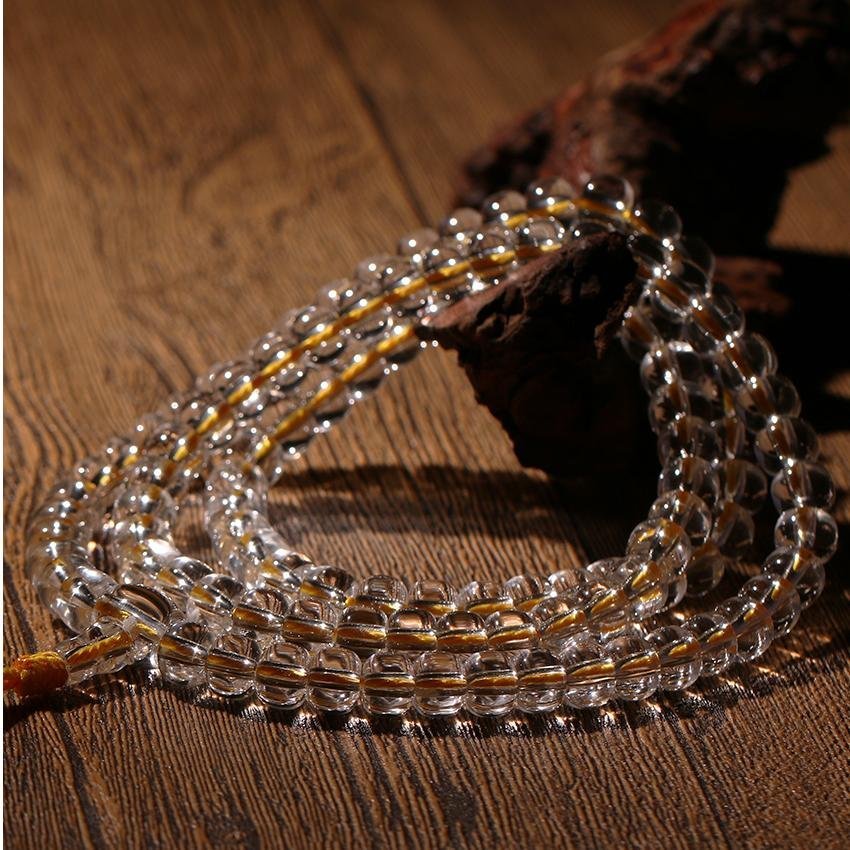 White crystal is revered across traditions for its purifying properties. It cleanses negative energy, amplifies your intentions, and fosters serenity. The natural translucence of each bead reflects light with a soft radiance — a symbol of clarity and divine presence.